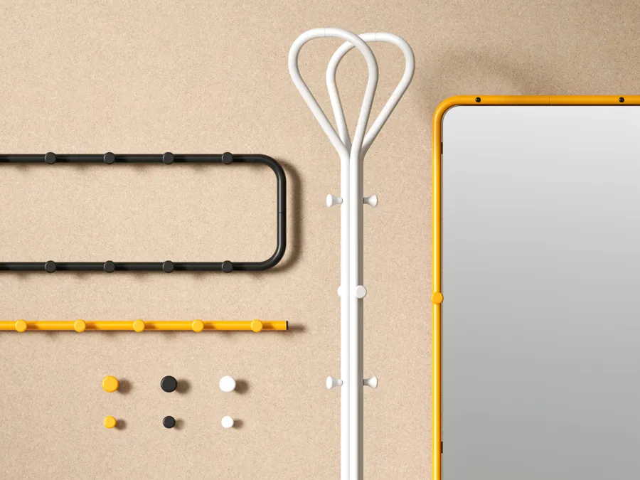 Att designa nya produkter som passar in i Classic-familjen kändes som en bra och rolig utmaning. Hatthyllan är en så ikonisk och välbekant möbel med sin enkla, okomplicerade form – tillverkad i bockat metallrör och nät. Vår ingång har varit att bidra till och utöka familjen med helt nya och självständiga föremål, som återanvänder några av de klassiska materialen och dimensionerna – men samtidigt också lägger till något nytt som pekar ut en ny riktning.